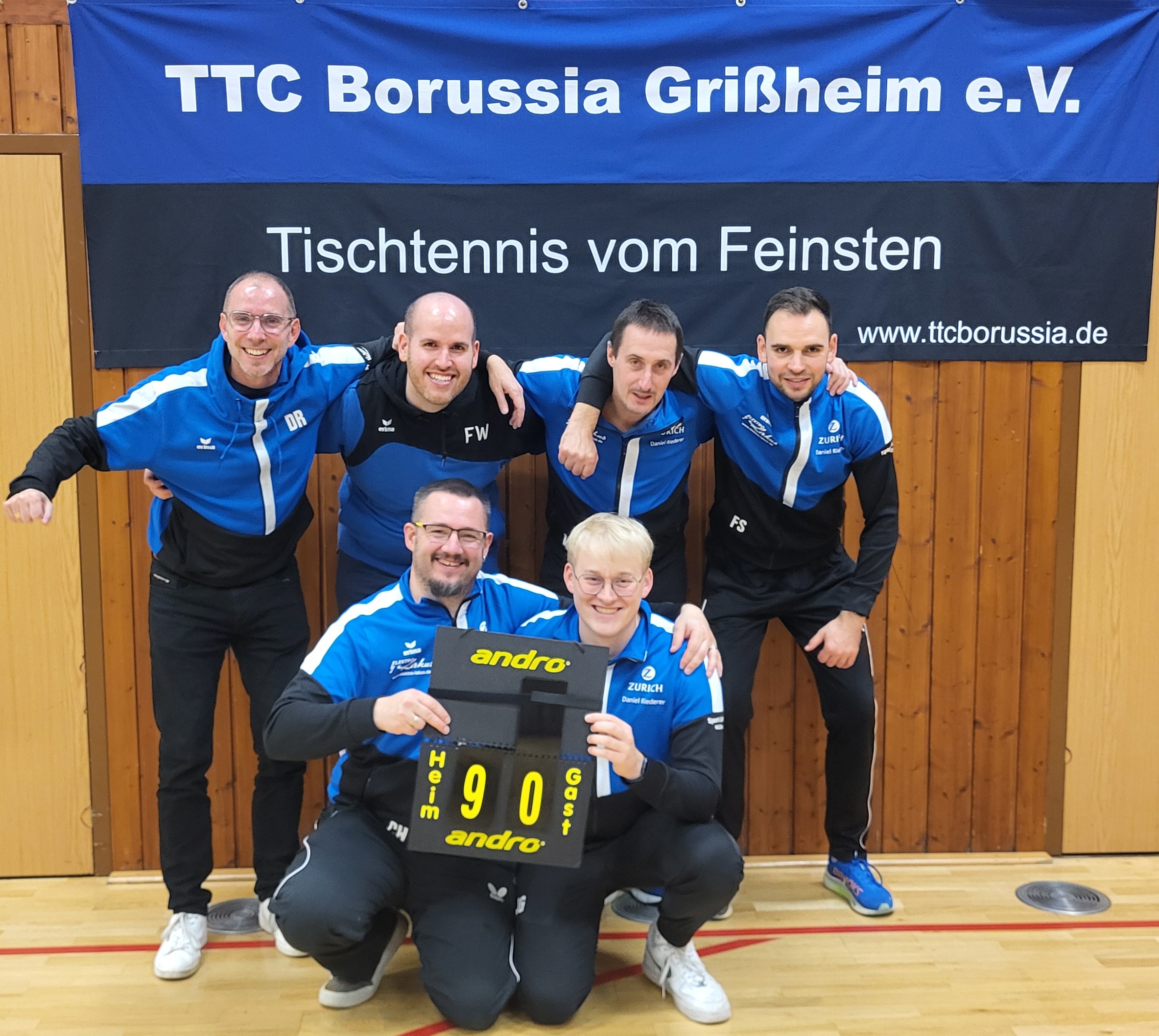 Mit einem deutlichen 9:0-Heimerfolg über den PTSV Jahn Freiburg sorgte die erste Mannschaft des TTC Borussia Grißheim am Freitagabend für ein klares Ergebnis. In nur 1 Stunde und 45 Minuten war die Begegnung entschieden – ein Sieg in Rekordzeit.